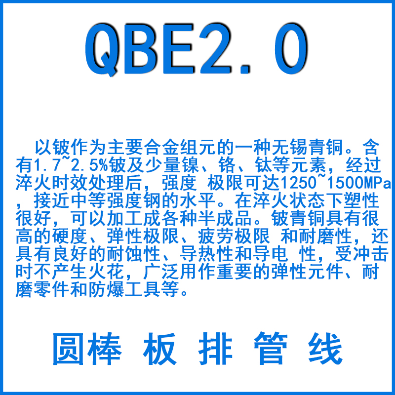 QBe2鈹青銅為含有少量鎳的鈹青銅,是力學.物理.化學綜合性能良好的一種合金。